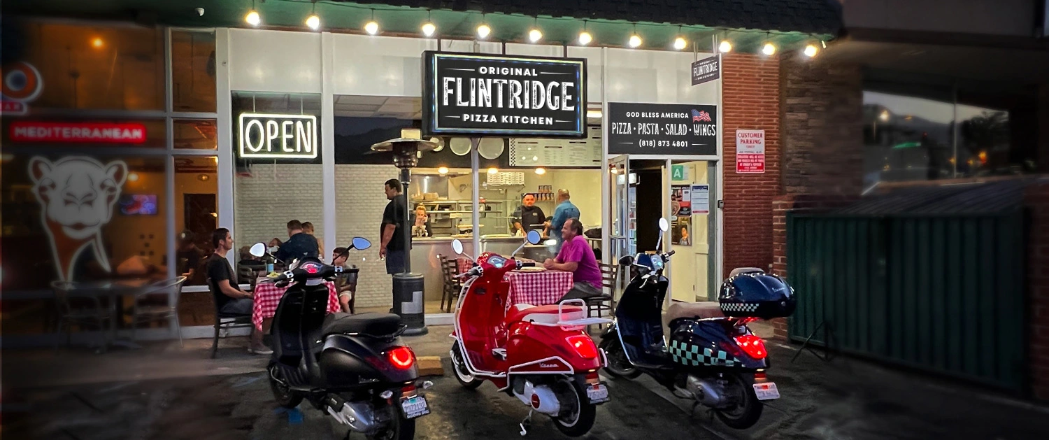 New York style pizzeria serving traditional Italian favorites in La Cañada in 2010. Here at Flintridge Pizza Kitchen we take great pride on using the highest quality ingredients to give you the best dining experience every single time. Flintridge Pizza Kitchen is not one of those 3-for-1 pizza places. We serve excellent New York Style Italian food with premium ingredients and some love, just the way momma did.